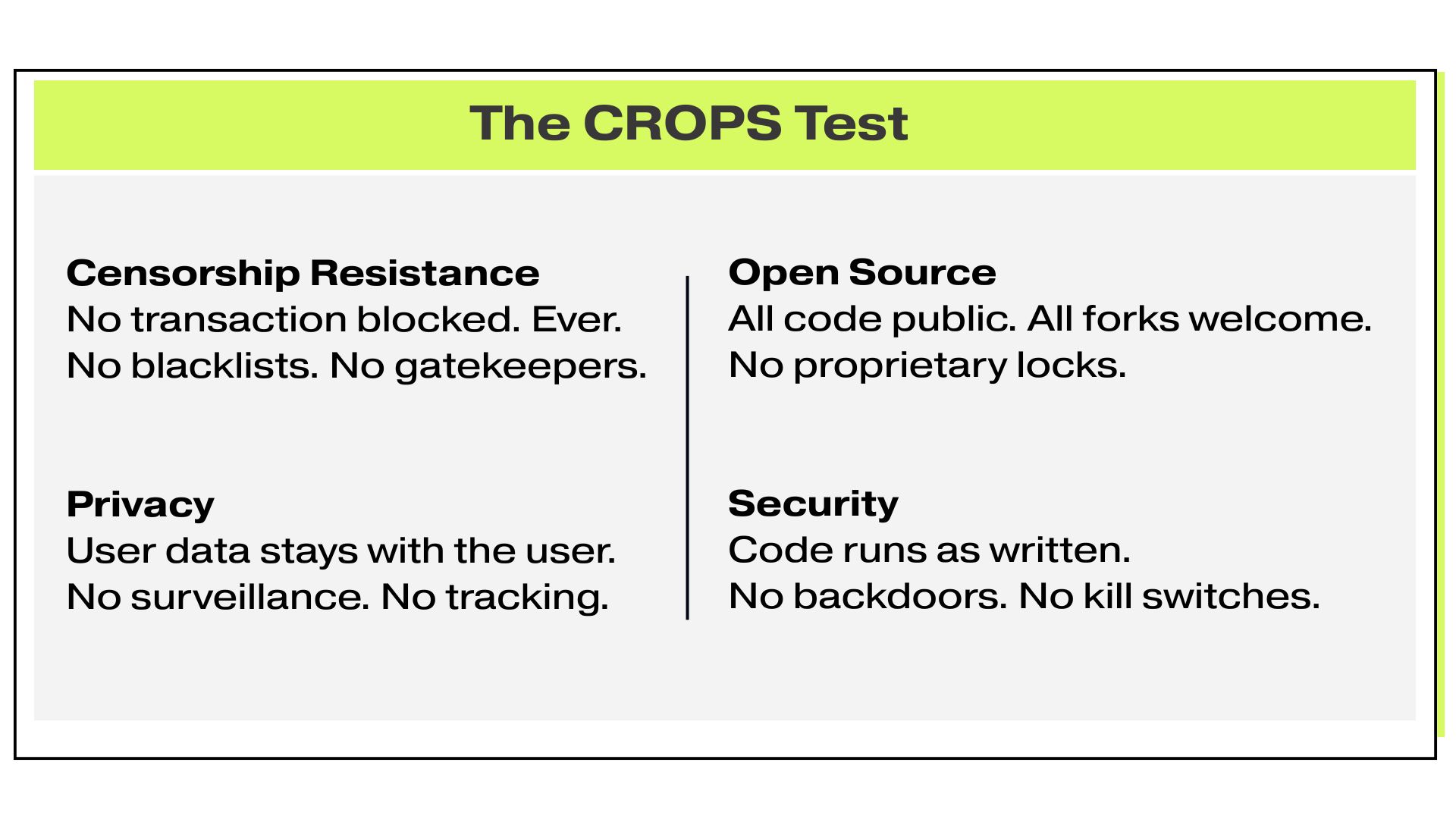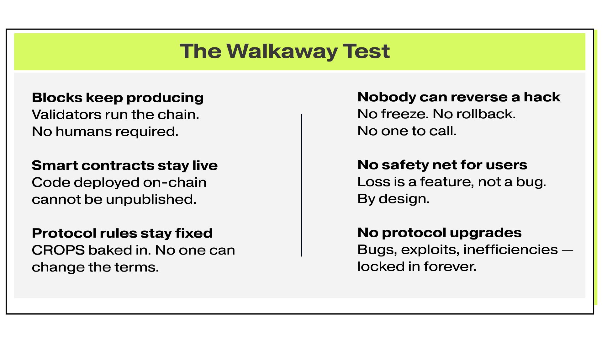 ETH offers: No backdoors. No bailouts. No backsies.